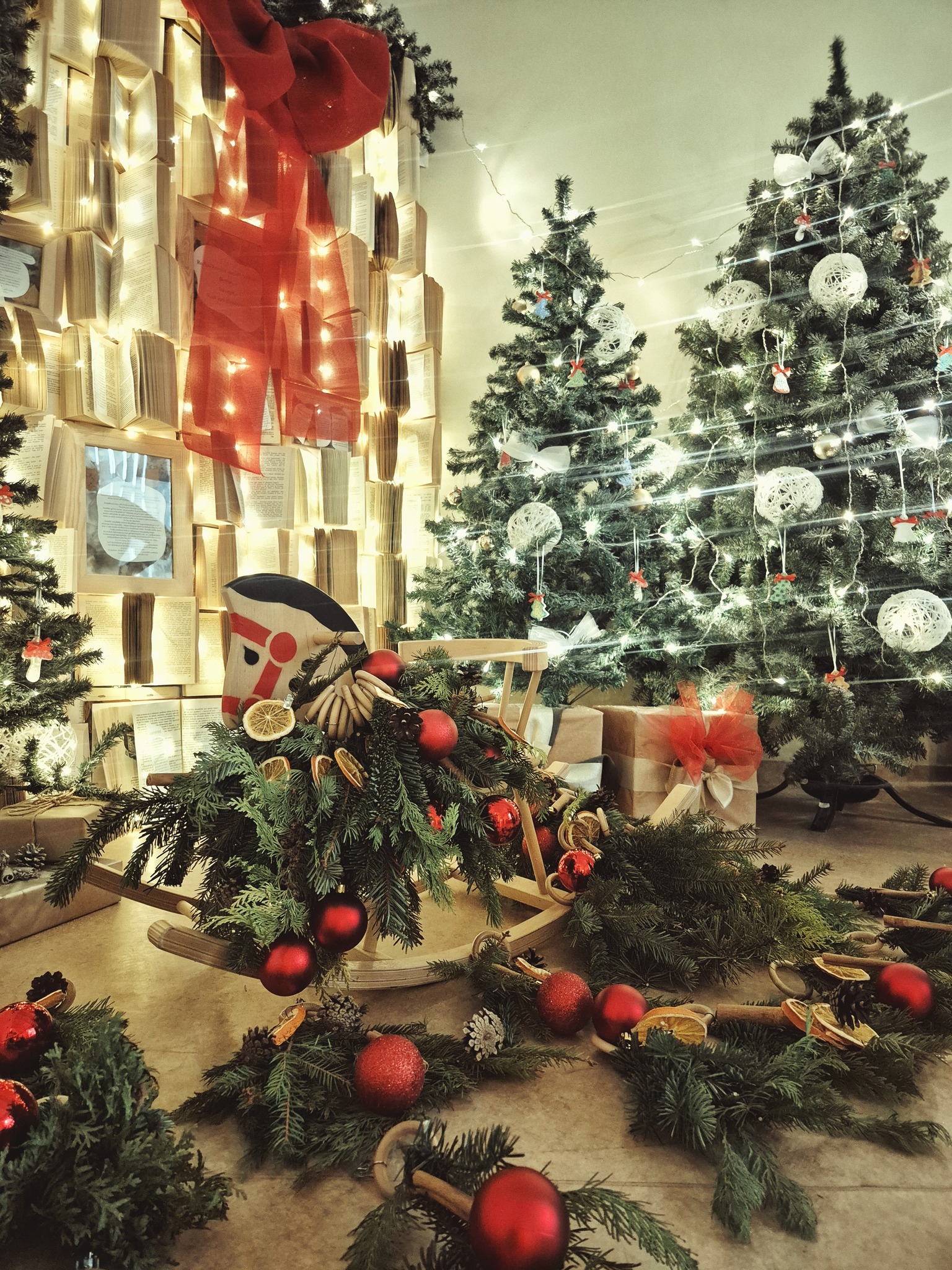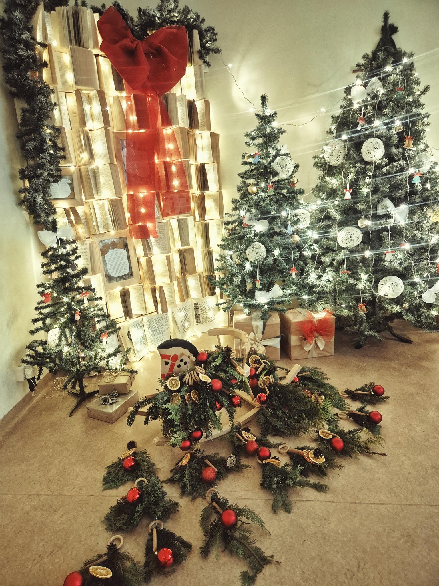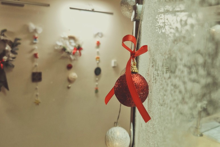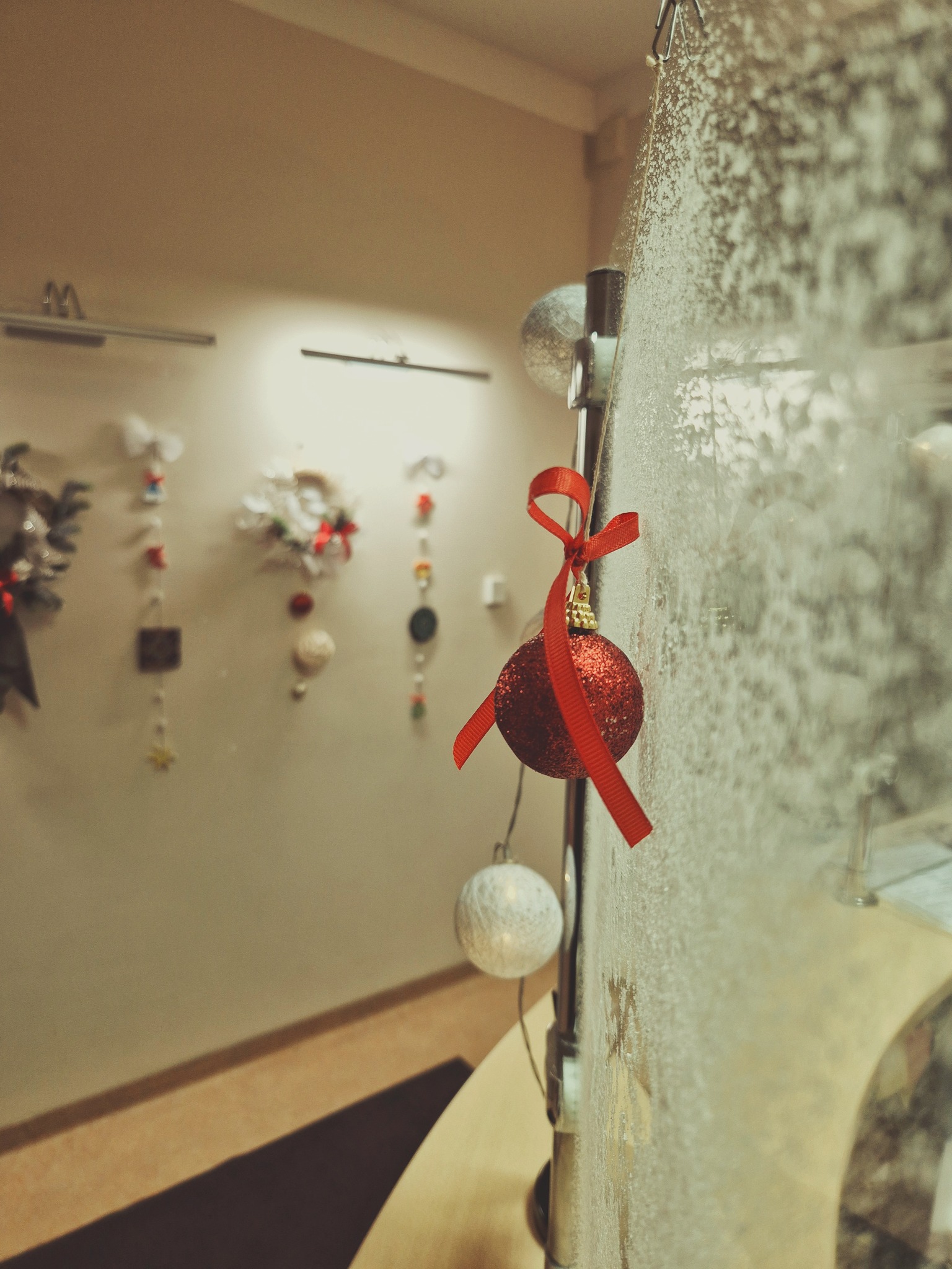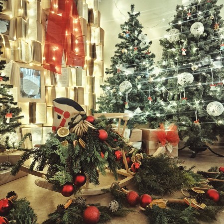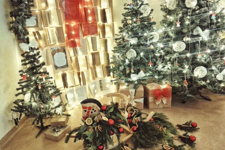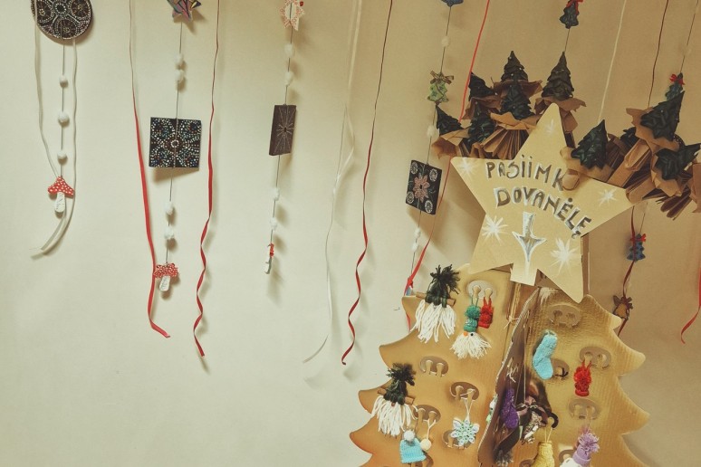 Centro fojė pasitinka eglutė, pilna smulkių ir mielų rankų darbo dovanėlių – kiekvienas gali pasiimti po šventinę džiugesio akimirką.