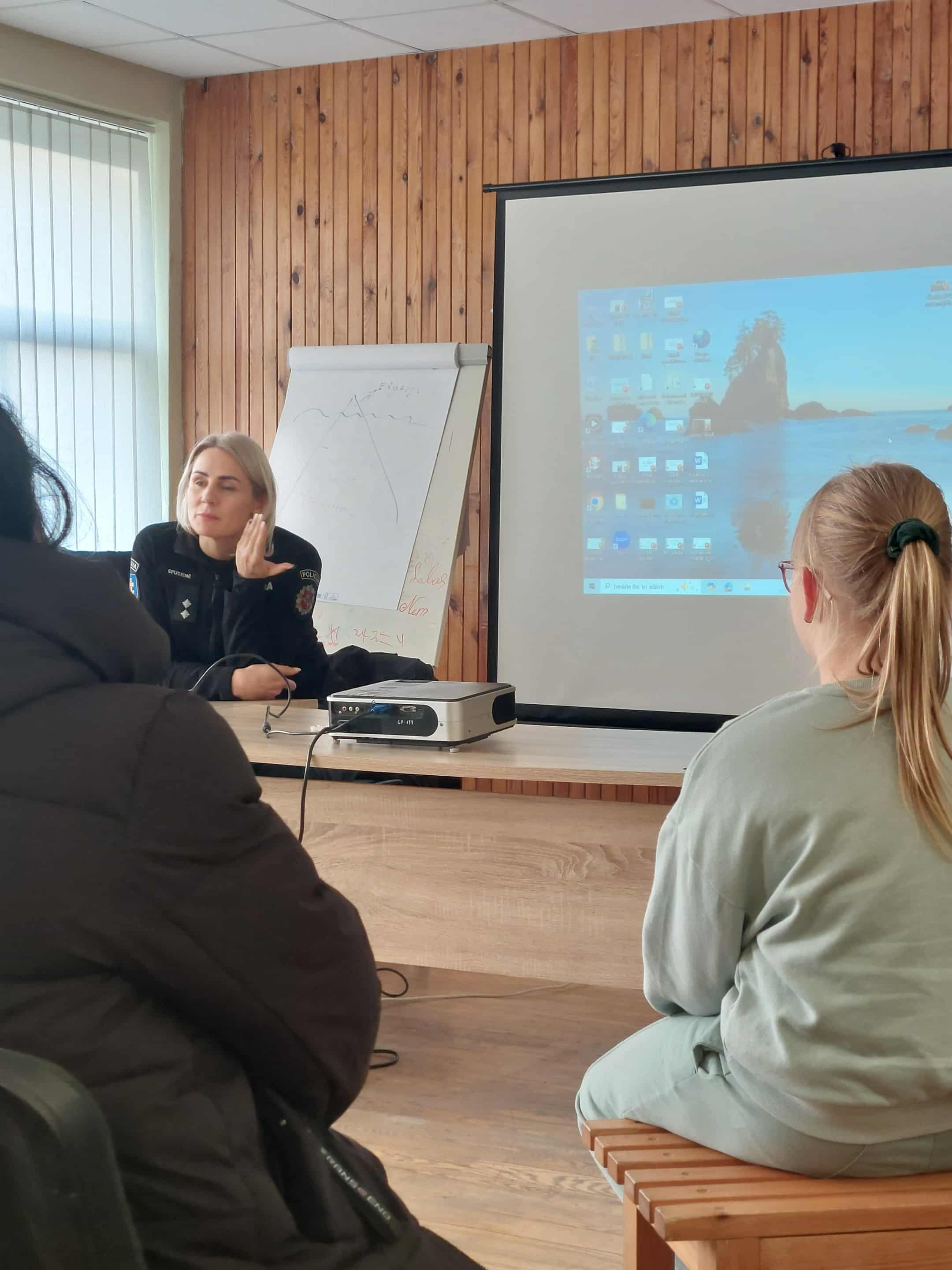 Paskaitos metu pristatytos įvairios smurto ir patyčių formos, požymiai ir pasekmės skirtingo amžiaus žmonėms. Pareigūnai taip pat aptarė pagalbos gavimo galimybes: kokios institucijos teikia pagalbą, kaip atpažinti grėsmingas situacijas ir kur kreiptis esant pavojui. Diskusija buvo įtraukianti – dalyviai drąsiai uždavė klausimus, dalijosi savo patirtimis, o renginio atmosfera išliko bendruomeniška ir palaikanti.
